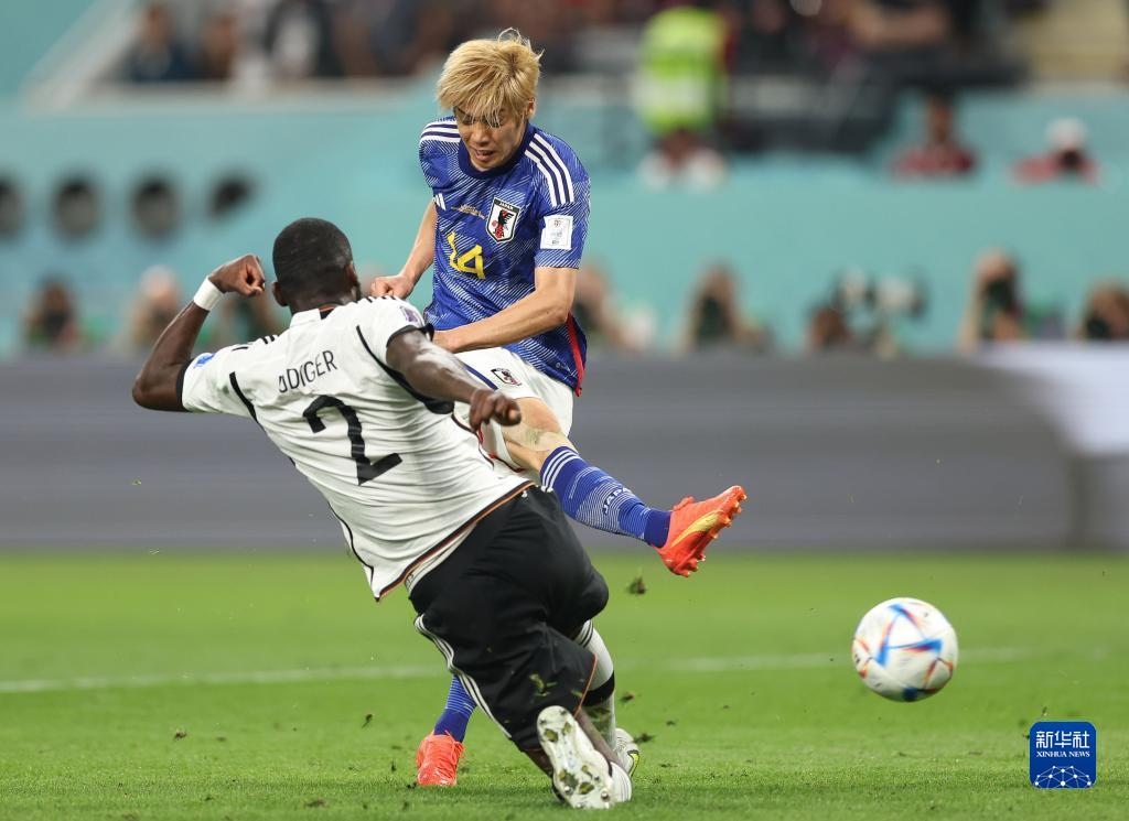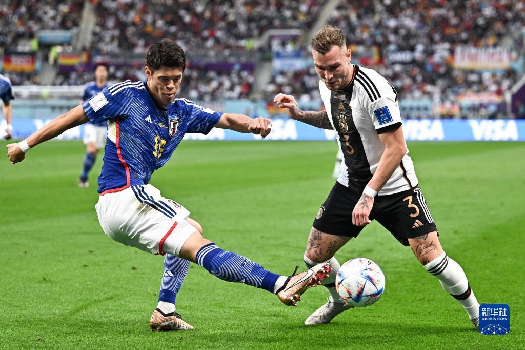 當(dāng)日,在卡塔爾多哈哈里發(fā)國際體育場進(jìn)行的2022卡塔爾世界杯足球賽E組比賽中,日本隊以2比1戰(zhàn)勝德國隊。