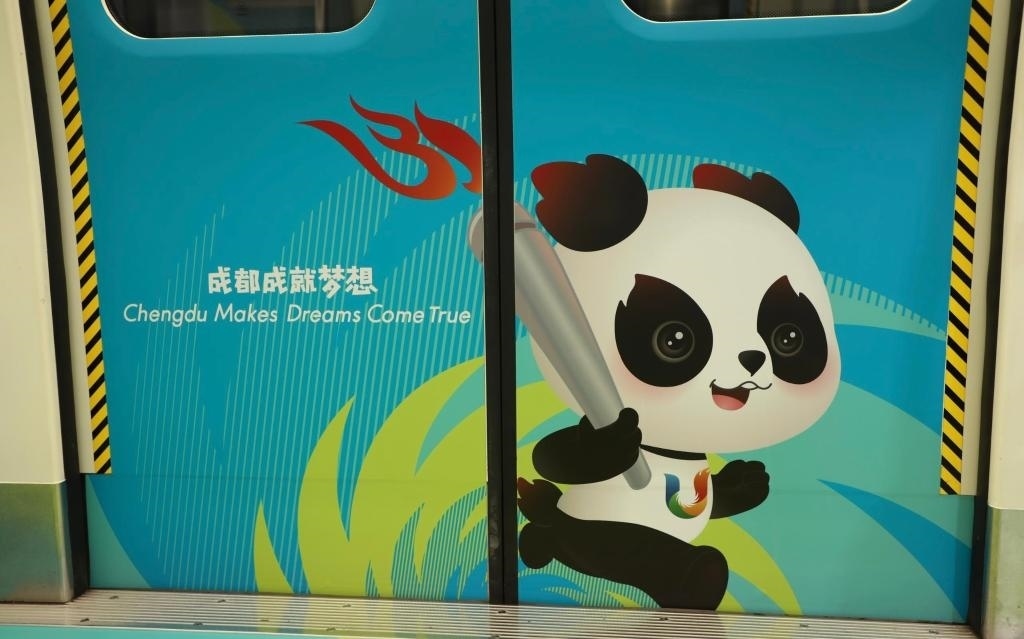 整體車廂打造創(chuàng)新植入了色彩明快、充滿青春氣息的“移動運動場”概念,立面畫面則結合青春動感的大學生形象,并選用田徑、網(wǎng)球、籃球、體操等運動的代表性動作為設計元素,全面凸顯成都大運會賽事核心主題。