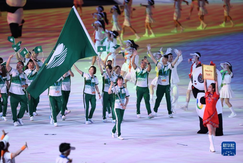 7月28日,中國(guó)澳門大學(xué)生體育代表團(tuán)在開(kāi)幕式上入場(chǎng)。