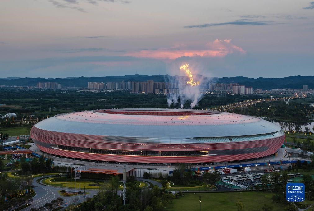 當(dāng)晚,第31屆世界大學(xué)生夏季運(yùn)動(dòng)會(huì)開(kāi)幕式在成都東安湖體育公園主體育場(chǎng)舉行。