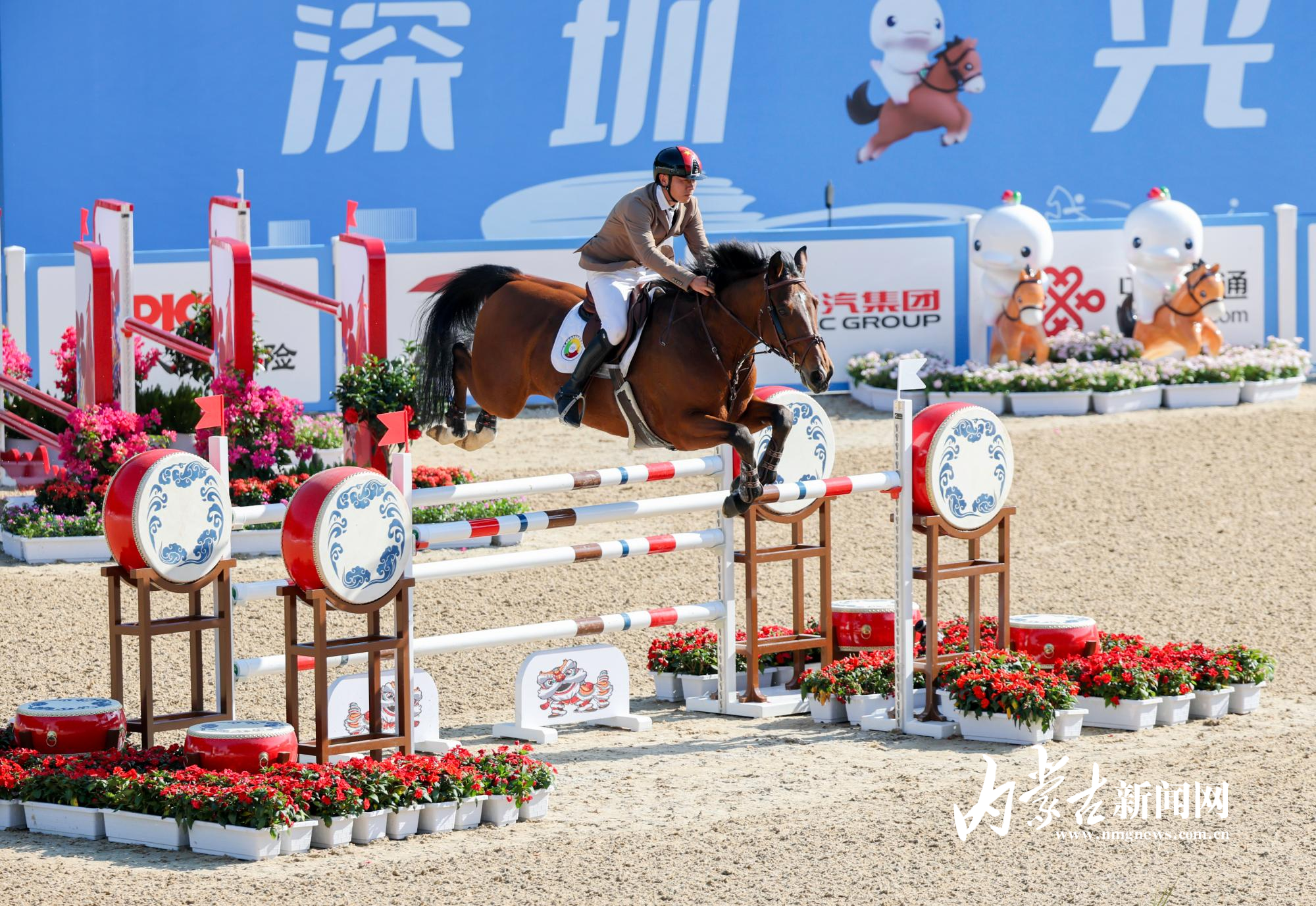 11月17日,第十五屆全國(guó)運(yùn)動(dòng)會(huì)馬術(shù)項(xiàng)目場(chǎng)地障礙團(tuán)體賽在深圳市光明國(guó)際馬術(shù)中心進(jìn)行,由達(dá)日瑪、劉同晏、張睿、韓豐組成的內(nèi)蒙古隊(duì)?wèi){借兩輪穩(wěn)定發(fā)揮,以總罰分31分的成績(jī)斬獲銅牌。