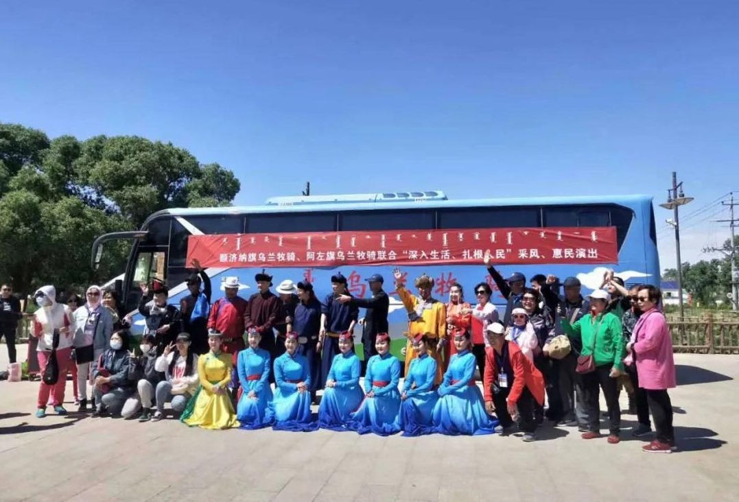 5月28日至6月2日,阿拉善左旗文化旅游局組織阿拉善左旗烏蘭牧騎11名隊員抵達額濟納旗,開展了為期6天的“深入生活,扎根人民”采風創(chuàng)作、惠民演出活動。額濟納旗文化旅游廣電局相關(guān)領(lǐng)導及烏蘭牧騎隊員們?nèi)膛阃瑓⑴c此次活動。