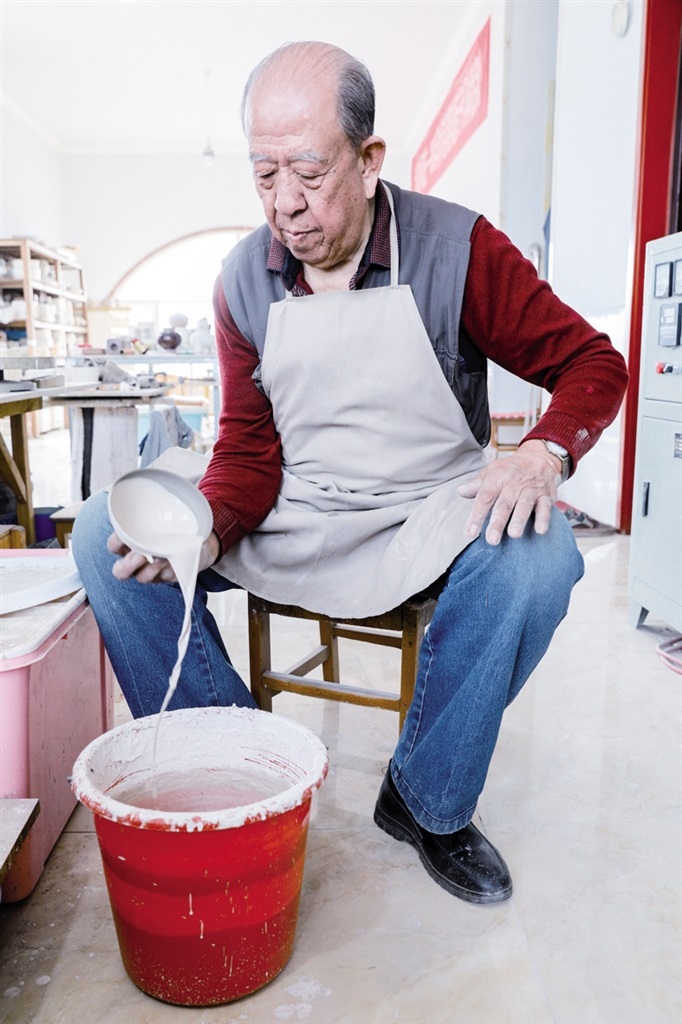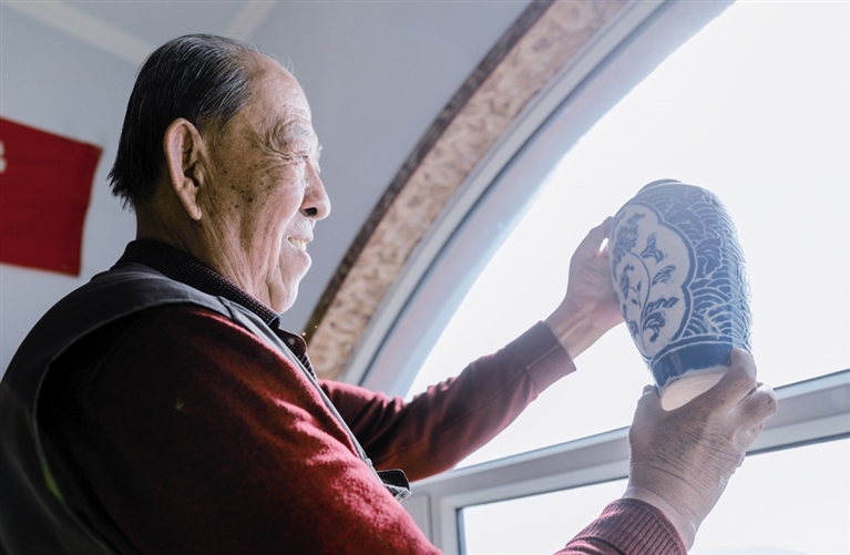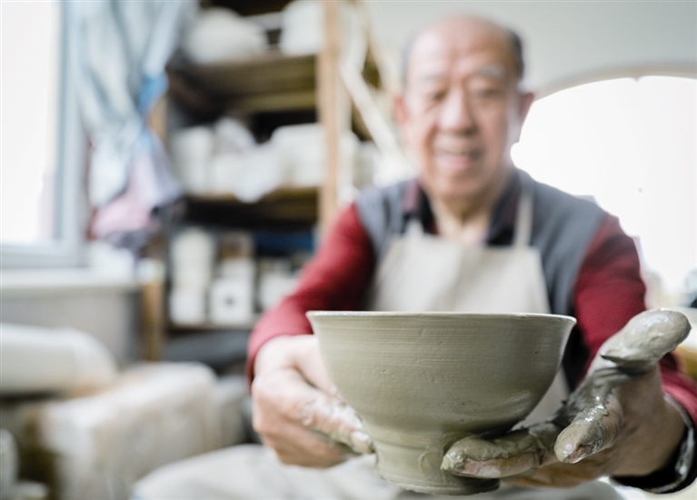 隨后,他走進(jìn)“饅頭窯”旁邊的一口窯洞,這是當(dāng)時(shí)張家的一間手工作坊,揉泥、拉坯、上釉等一系列制作陶瓷的工序都是在這里完成?!拔揖统錾谶@個(gè)村子,已經(jīng)是張家瓷藝的第九代傳人了。作為中國(guó)磁州窯譜系,清水河黑礬溝瓷藝生產(chǎn)歷史至少已有800年?!标P(guān)于這項(xiàng)非遺的歷史故事,張選老人向記者娓娓道來(lái):大約400年前,他們張家走西口從山西來(lái)到清水河謀生,當(dāng)時(shí)清水河黑礬溝有一家姓杜的人家做陶瓷營(yíng)生,張家的先人在杜家打工,大概這樣打工做了三輩人吧,杜家忽然不做了,搬離了黑礬溝,他們張家便把杜家的產(chǎn)業(yè)買了下來(lái)繼續(xù)做。“那個(gè)時(shí)候黑礬溝生產(chǎn)的瓷器都與人們生活息息相關(guān),比如腌菜缸、水甕、碗盤等,一個(gè)家庭手工作坊一天能生產(chǎn)500個(gè)碗呢,生意很好,人們靠做這個(gè)營(yíng)生也過(guò)上了不錯(cuò)的生活?!睆堖x回憶著清水河瓷藝鼎盛時(shí)期的場(chǎng)景。上個(gè)世紀(jì)70年代,由于交通、技術(shù)等原因,黑礬溝燃燒了幾百年的窯火熄滅,傳統(tǒng)“饅頭窯”被正式廢棄,轉(zhuǎn)移到窯溝鄉(xiāng)后手工作坊變成了機(jī)械化生產(chǎn),這也讓清水河的陶瓷名聲大噪。當(dāng)時(shí),在窯溝鄉(xiāng)一帶,從事陶瓷生產(chǎn)的有近萬(wàn)人,陶瓷業(yè)成為清水河支柱產(chǎn)業(yè)。