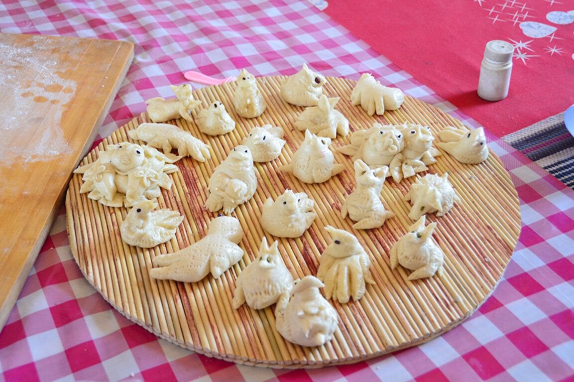 俗稱面花、禮饃、花糕、捏面人,是民間美術(shù)與傳統(tǒng)手工技藝有機(jī)結(jié)合的藝術(shù)形式。2008年,入選第二批國(guó)家級(jí)非物質(zhì)文化遺產(chǎn)名錄。