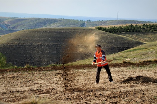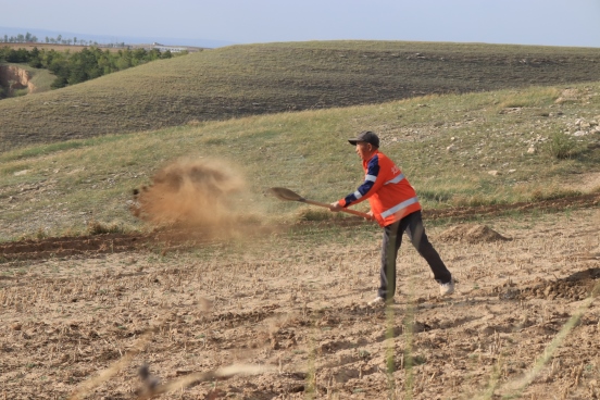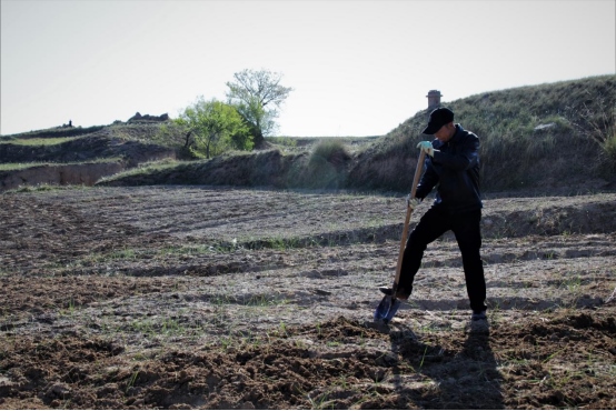 邊墻壕村是個小村莊,在村口遇見一對夫婦正在播種,據(jù)介紹全村現(xiàn)有20多戶人家四五十口人,年輕人都出去打工了,剩下些村民老人居多。讓我們再次把鏡頭對準(zhǔn)邊墻下春播的百姓。