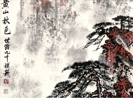 圖:梁世雄作品《黃山秋色》(局部)