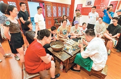 在東城區(qū)傳統(tǒng)韻味體驗之旅中,游客在吉祥大戲院國粹京劇體驗基地可以穿戴上京劇服裝道具,體驗戲曲演員化妝過程,品嘗戲曲主題“吉祥咖啡”,觀看經(jīng)典京劇演出,與名師名家互動,零距離感受國粹經(jīng)典的魅力;在廣譽遠中醫(yī)藥文化體驗基地,游客通過聽中醫(yī)講解、辨藥材識優(yōu)劣、手工制作香囊等多種體驗方式,感受中醫(yī)藥文化。在和平菓局京味文化體驗基地,游客可以走進煤廠胡同、小覺寺等老北京場景,體驗拉洋片、草編藝術、皮影、捏面人等傳統(tǒng)京味文化。