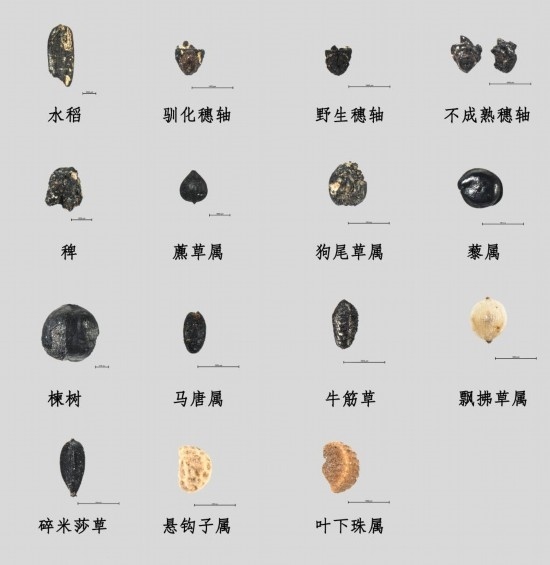 下湯遺址出土上山文化時(shí)期植物遺存。(全國(guó)十大考古新發(fā)現(xiàn)活動(dòng)辦公室供圖)