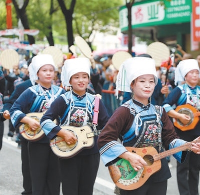 “今年,我們新增了‘布依族婚俗’方陣。”惠水縣文聯(lián)副主席羅建華介紹,“婚俗具有豐富的內(nèi)容,可集中展示民族的習(xí)俗、禮儀、服飾與風(fēng)物,是承載民族民間文化的綜合體?!?/p>