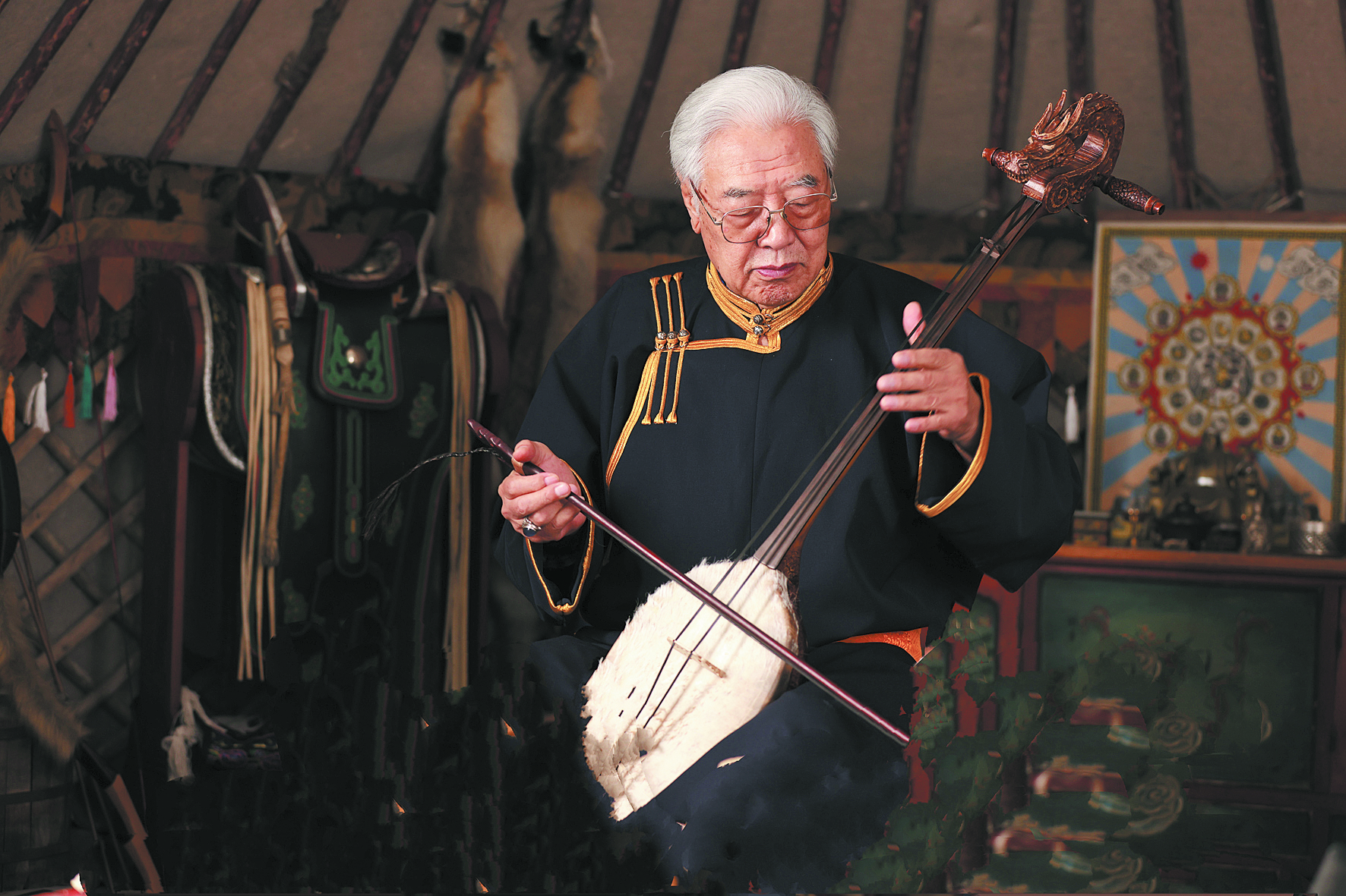 每每說(shuō)起馬頭琴,86歲高齡的布林就來(lái)了精神。在與馬頭琴結(jié)緣70年的歲月里,他拜名師、收高徒,查古籍、訪民間,撥開了籠罩在馬頭琴上的重重迷霧……