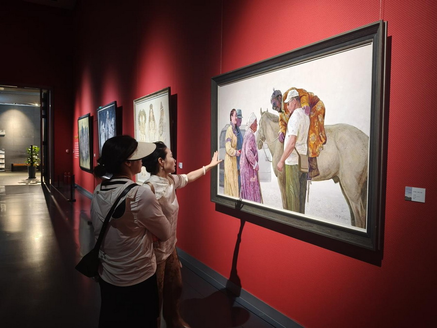 “吾心歸 ——內(nèi)蒙古美術(shù)館館藏妥木斯師生油畫作品展”(8.8-9.7,3/4號(hào)展廳):該展覽像一部立體的草原藝術(shù)編年史,妥木斯筆下的蒙古馬依然昂揚(yáng),而弟子們的作品早已玩出了新花樣:超現(xiàn)實(shí)手法讓羊群飄在星空下,極簡(jiǎn)線條勾勒出蒙古包的幾何之美。在“當(dāng)代回聲”篇章里,能清晰看見草原意象如何在畫布上完成從傳統(tǒng)到現(xiàn)代的蛻變,就像馬頭琴也能彈出電子旋律,根沒變,韻更活了。