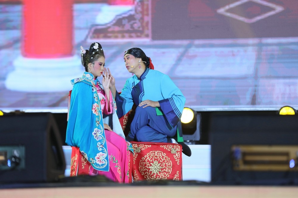 王舜、王雨香表演二人臺(tái)傳統(tǒng)小戲《探病》 北疆新聞?dòng)浾?張偉攝影
