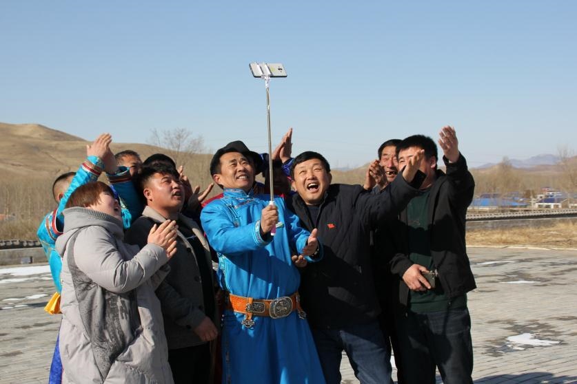 △東薩拉嘎查牧民通過(guò)微信與在北京開(kāi)會(huì)的吳云波視頻通話