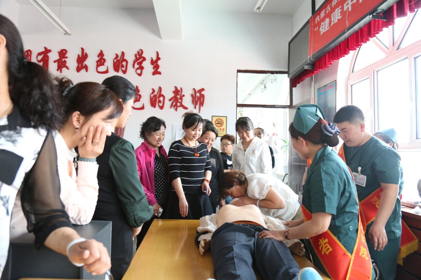 志愿護(hù)理服務(wù)小組到學(xué)校對(duì)教師進(jìn)行急診急救知識(shí)和技能培訓(xùn)