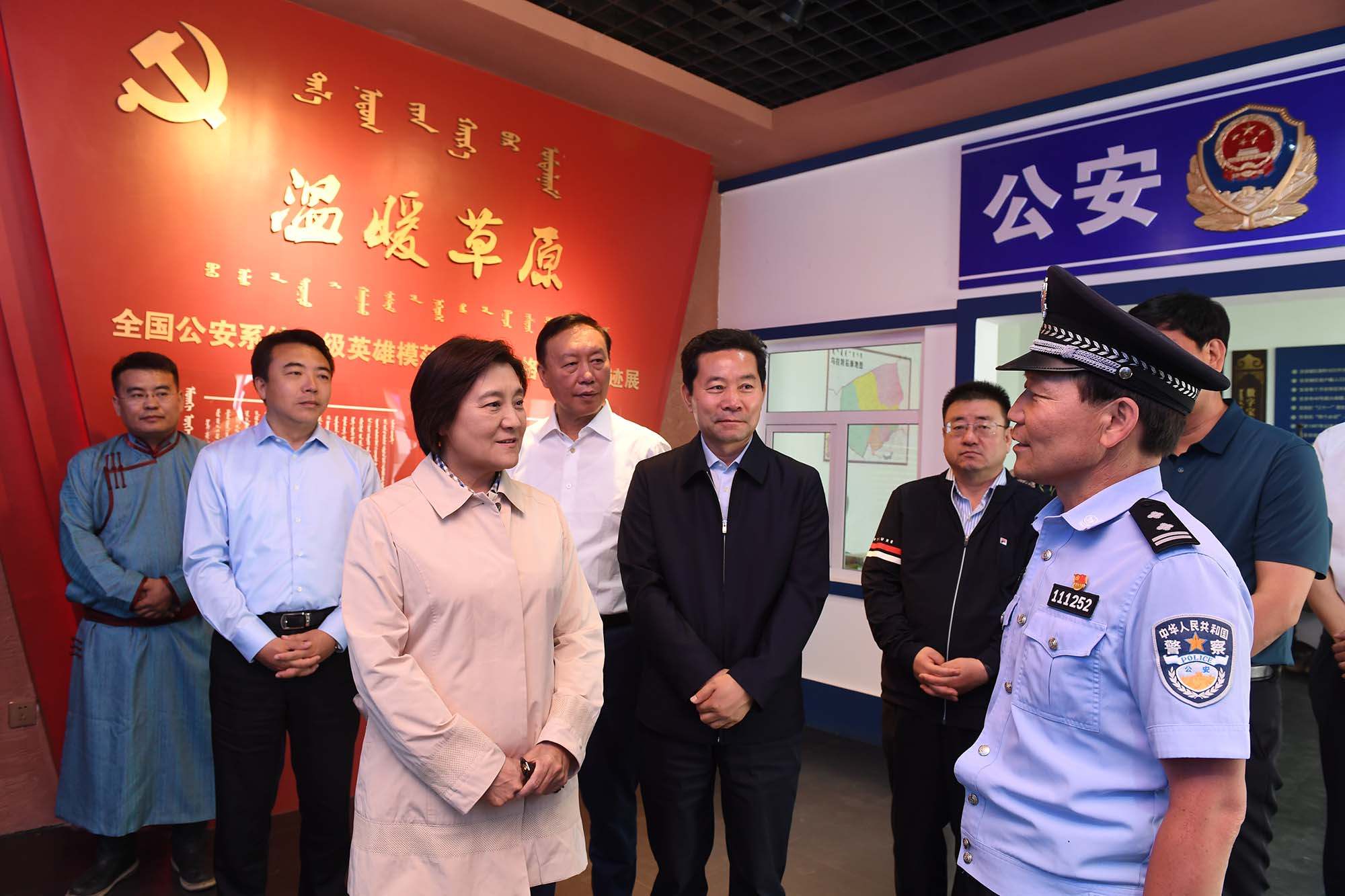 烏拉特后旗公安局潮格溫都爾鎮(zhèn)派出所民警寶音德力格爾被授予“全國公安系統(tǒng)一級英雄模范”榮譽稱號。布小林走進(jìn)寶音德力格爾事跡館參觀,與寶音德力格爾親切交談,對他舍小家顧大家、為人民群眾無私奉獻(xiàn)的精神給予充分肯定。