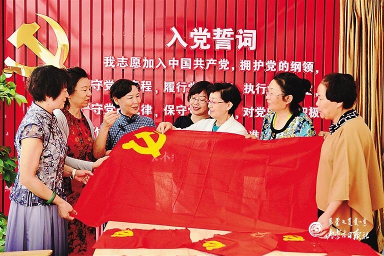 6月30日,呼和浩特市玉泉區(qū)五塔北街社區(qū)老黨員們正在一針一線(xiàn)繡黨旗。當(dāng)日,該社區(qū)舉行了“繡黨旗 迎七一”獻(xiàn)禮活動(dòng),老黨員、新黨員和志愿者一起繡黨旗、頌黨恩,抒發(fā)對(duì)黨的熱愛(ài)之情。(內(nèi)蒙古日?qǐng)?bào)記者 安寅東 攝)