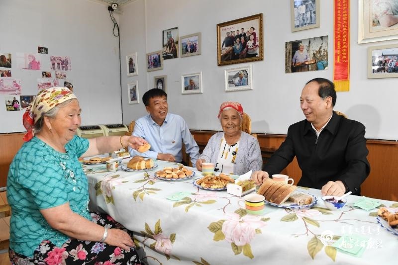 7月6日,自治區(qū)黨委書記、人大常委會主任石泰峰深入呼倫貝爾市額爾古納市恩和俄羅斯族民族鄉(xiāng),走進(jìn)熱尼列巴坊了解經(jīng)營情況。內(nèi)蒙古日報社融媒體記者 袁永紅 攝