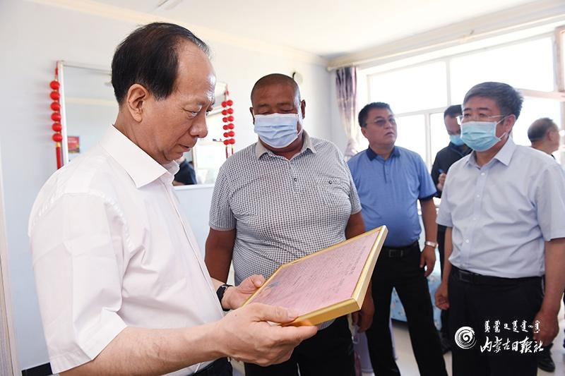 7月14日,自治區(qū)黨委書(shū)記、人大常委會(huì)主任石泰峰深入烏蘭察布市四子王旗吉生太鎮(zhèn)糖坊卜子行政村下坤兌新村,走訪貧困戶了解生產(chǎn)生活情況。內(nèi)蒙古日?qǐng)?bào)社融媒體記者 袁永紅 攝