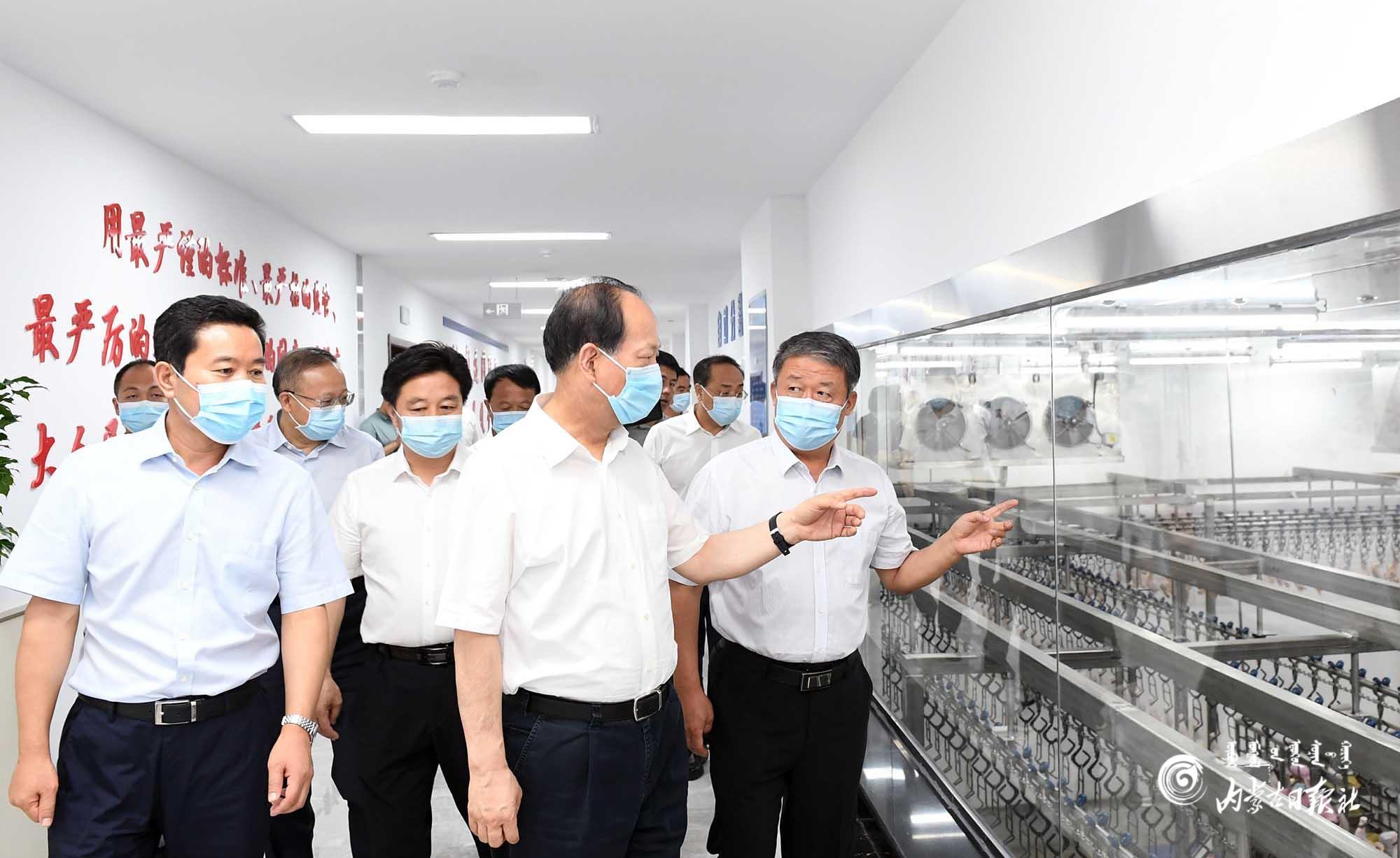8月18日,自治區(qū)黨委書記、人大常委會(huì)主任石泰峰來到巴彥淖爾市五原縣潤海源8000萬只肉雞屠宰加工廠,了解經(jīng)營情況。內(nèi)蒙古日報(bào)記者 袁永紅 攝