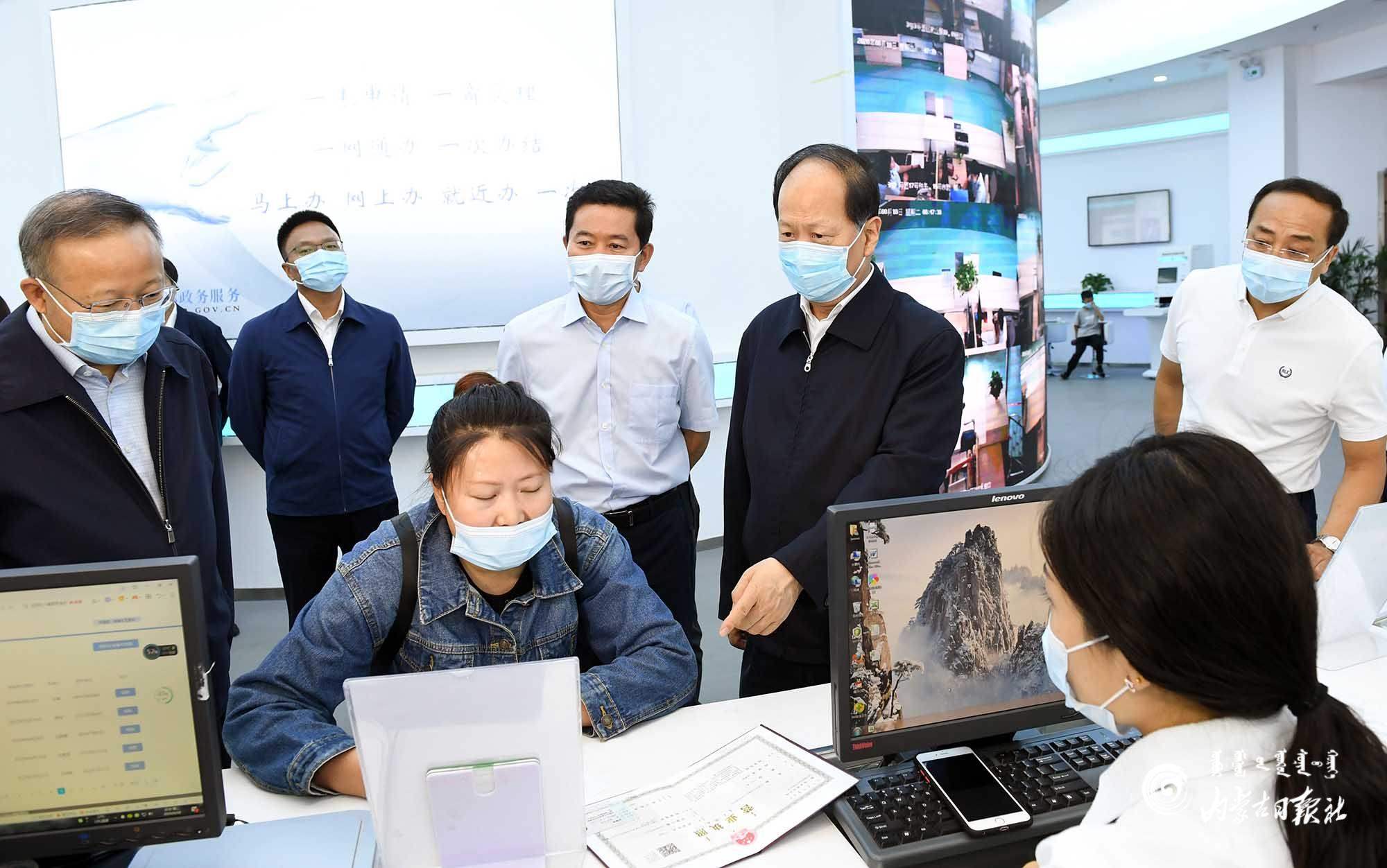8月18日,自治區(qū)黨委書記、人大常委會(huì)主任石泰峰來到巴彥淖爾市臨河區(qū)市政服務(wù)中心,了解正在辦理企業(yè)注冊服務(wù)平臺(tái)流程。內(nèi)蒙古日報(bào)記者 袁永紅 攝