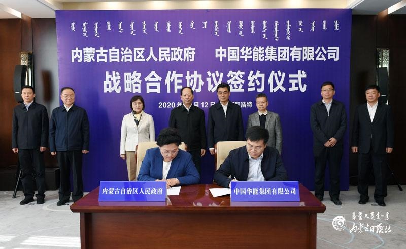 10月12日,內(nèi)蒙古自治區(qū)人民政府與中國(guó)華能集團(tuán)有限公司在呼和浩特簽署戰(zhàn)略合作協(xié)議。自治區(qū)黨委書記、人大常委會(huì)主任石泰峰,自治區(qū)黨委副書記、自治區(qū)主席布小林,中國(guó)華能集團(tuán)有限公司董事長(zhǎng)舒印彪見證簽約。