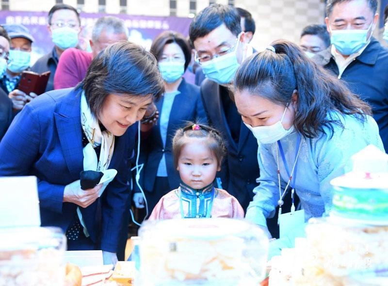 10月17日,自治區(qū)黨委副書記、自治區(qū)主席布小林,在全區(qū)推進奶業(yè)振興暨民族傳統(tǒng)奶制品產(chǎn)業(yè)發(fā)展現(xiàn)場會上參觀各盟市民族傳統(tǒng)奶制品產(chǎn)品展示。內蒙古日報記者 韓卿立 攝