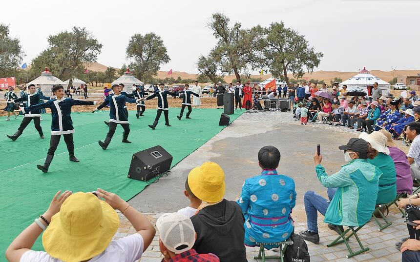 2019年8月,額爾古納市烏蘭牧騎深入阿拉善左旗巴彥浩特鎮(zhèn)特莫圖嘎查,為農(nóng)牧民送去精彩的文藝演出。