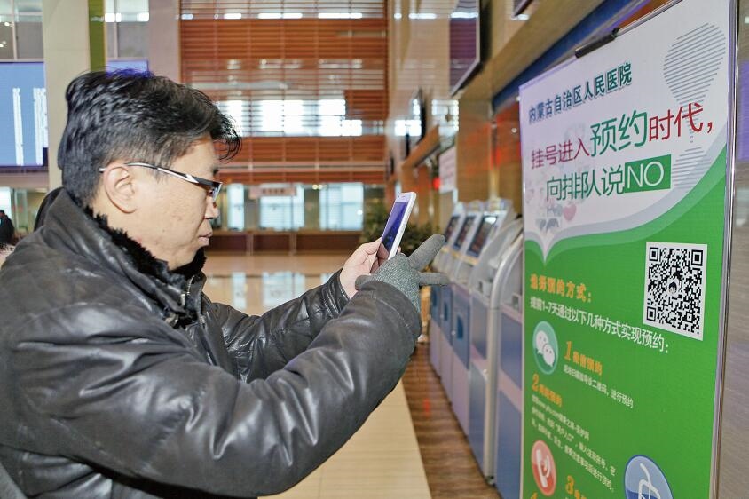 2016年1月,在內(nèi)蒙古自治區(qū)人民醫(yī)院 ,掛號可以通過掃描二維碼進(jìn)行預(yù)約,極大的方便了患者就醫(yī)。