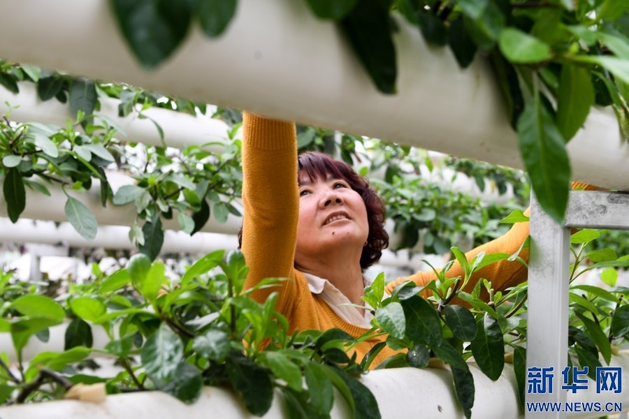 農(nóng)民在內(nèi)蒙古自治區(qū)巴彥淖爾市五原縣隆興昌鎮(zhèn)的一個現(xiàn)代農(nóng)業(yè)試驗示范區(qū)內(nèi)采摘無土栽培的蔬菜。新華社記者 劉磊 攝