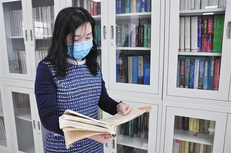內(nèi)蒙古自治區(qū)檔案館保管利用部副主任師念君查閱《告蒙古同胞書》。見習(xí)記者 袁寶年 攝