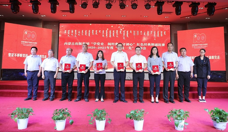 6月26日,內(nèi)蒙古出版集團(tuán)在維力斯大酒店舉辦“學(xué)黨史、閱經(jīng)典、守初心”紅色經(jīng)典朗誦比賽暨2020—2021年度“兩優(yōu)一先”表彰大會(huì)。內(nèi)蒙古出版集團(tuán)黨委書記、董事長(zhǎng)雙龍,黨委副書記王富,黨委委員、副總經(jīng)理扎拉根,副總經(jīng)理王曉玲,總編輯助理黃滔,總經(jīng)理助理白玉峰等領(lǐng)導(dǎo)出席會(huì)議。