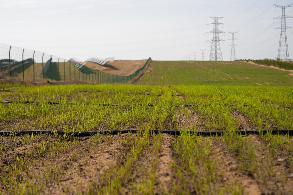 作為綠能碳匯(集團(tuán))有限公司綜合部部長(zhǎng),馬天景和他的團(tuán)隊(duì)一直關(guān)注著這些幼苗的長(zhǎng)勢(shì)。“這些牧草都是今年夏天剛剛試驗(yàn)種植的,目的是檢驗(yàn)不同品種的越冬能力,為明年推廣種植積累經(jīng)驗(yàn)。”馬天景說(shuō),未來(lái)這些牧草都將供應(yīng)給光伏基地東側(cè)的肉牛標(biāo)準(zhǔn)化養(yǎng)殖場(chǎng)。