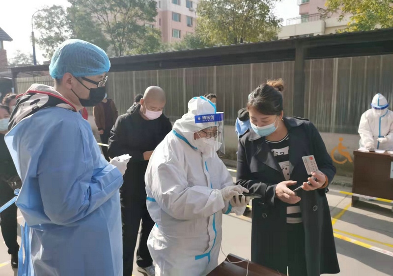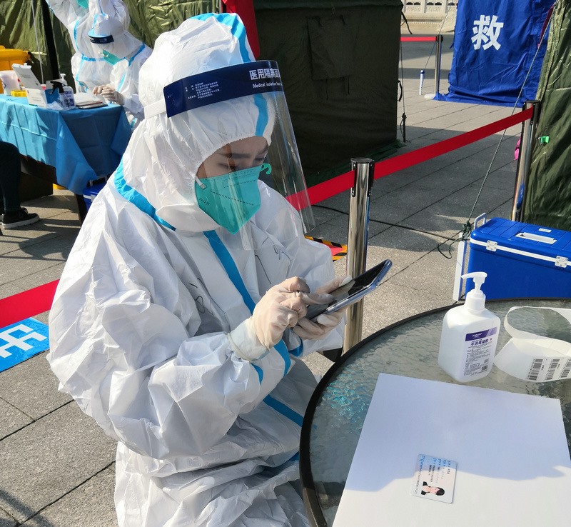 “昨天分配的任務(wù)是信息采集,因為第二輪核酸檢測要使用新的采集系統(tǒng),所以今天早晨7:00到崗后,大家開始學(xué)習(xí)信息采集系統(tǒng)的使用。信息采集不能出任何差錯,每一個信息采集員都很緊張,謹(jǐn)慎操作每一步?!痹诤艉秃铺厥杏袢獏^(qū)大召社區(qū)核酸檢測點參加志愿服務(wù)的張華媛說,8:00準(zhǔn)時開始第二次核酸檢測,直到下午2:00換崗,連續(xù)6小時緊張謹(jǐn)慎的信息采集,中途沒有休息過,整個身體感覺有點僵了。雖然很累,但是能成為抗疫戰(zhàn)士中的一員,和醫(yī)護人員、社區(qū)工作者及其他志愿者一起為呼和浩特抗疫貢獻自己的一份力,是一件非常有意義的事。