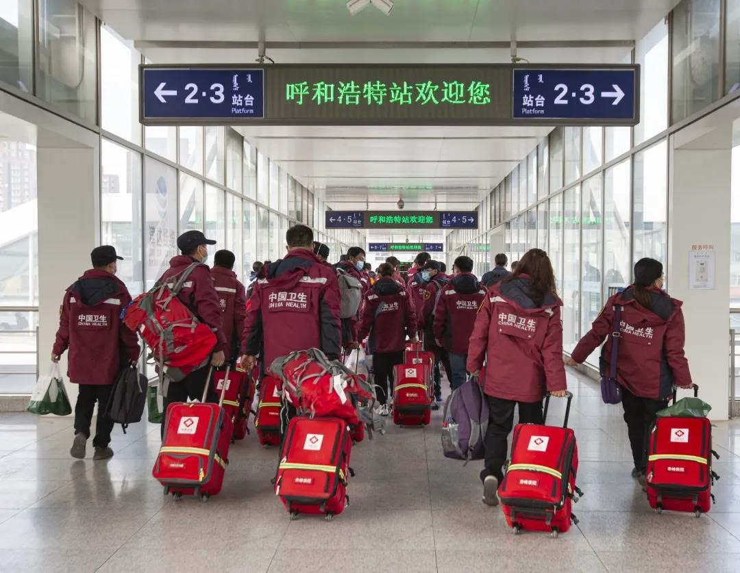 14時(shí),醫(yī)療隊(duì)到達(dá)呼和浩特站。