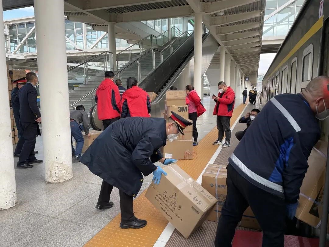 為保障防疫物資裝車效率,呼和浩特貨運(yùn)中心緊急組織28名青年志愿者,協(xié)助完成專列防疫物資搶運(yùn)任務(wù)。