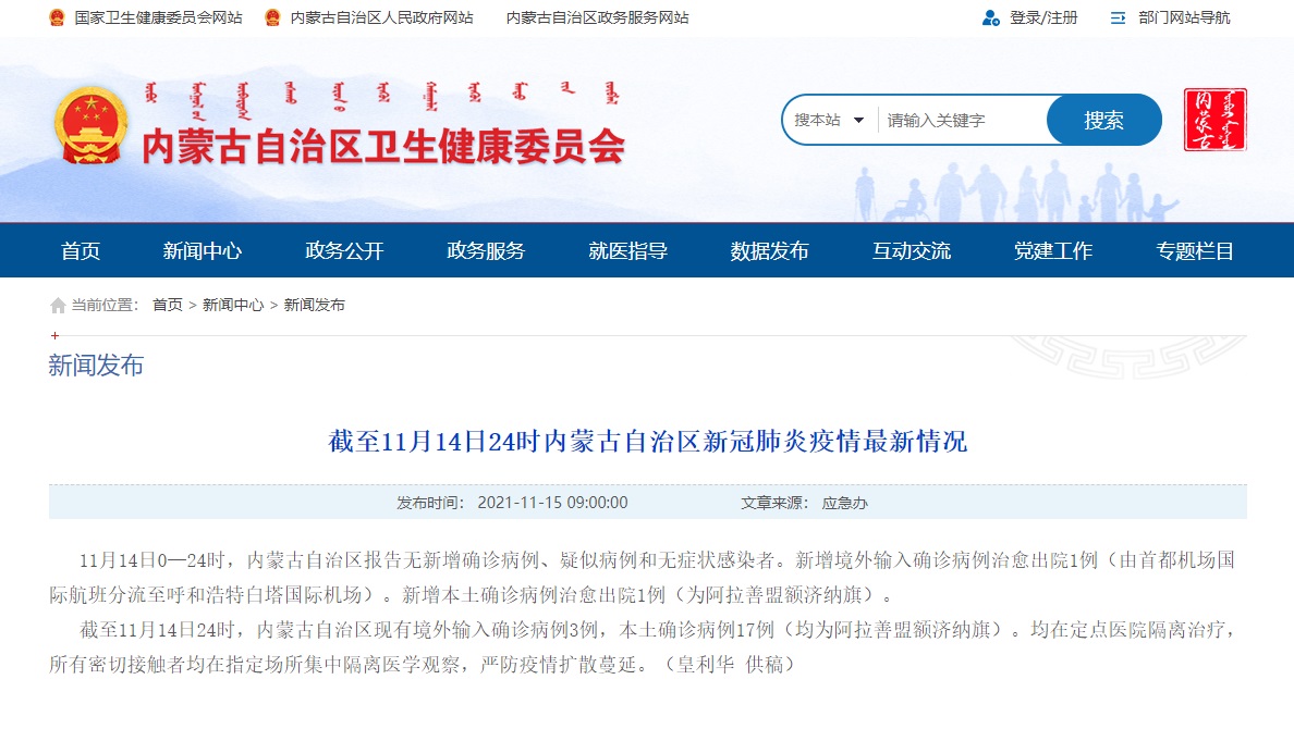 內(nèi)蒙古自治區(qū)衛(wèi)生健康委員會網(wǎng)站截圖