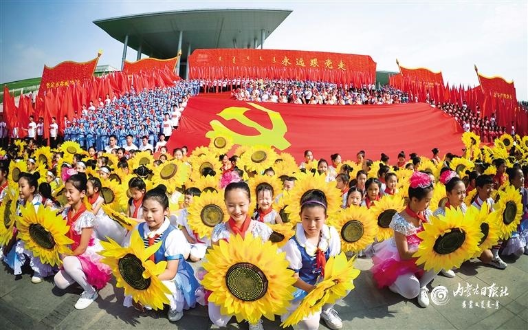 “永遠跟黨走”——慶祝中國共產(chǎn)黨成立100周年內(nèi)蒙古自治區(qū)(呼和浩特地區(qū))群眾性文化活動在呼和浩特市民族團結(jié)寶鼎廣場啟動。內(nèi)蒙古日報社融媒體記者 王曉博 攝