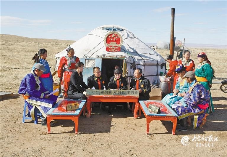 錫林浩特市人民法院組建的“牧區(qū)巡回法庭”開到了牧民家門口,被當(dāng)?shù)厝罕娪H切地稱為“馬背法庭”。內(nèi)蒙古日報社融媒體記者 馬建荃 攝
