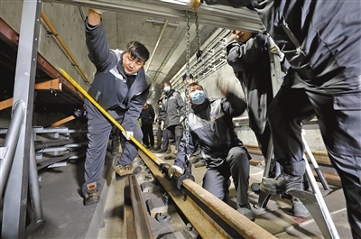“我們的日常工作主要是對地鐵軌道線路進(jìn)行周期性檢查和計(jì)劃性維修,確保地鐵軌道設(shè)備狀態(tài)良好,保證電客車在線路上安全、平穩(wěn)、不間斷運(yùn)行。”田智宏對記者說:“維修對象主要是鋼軌和道岔,通過我們的起、撥、改等作業(yè),使得軌道幾何形位保持在標(biāo)準(zhǔn)值范圍內(nèi)。”
