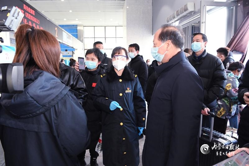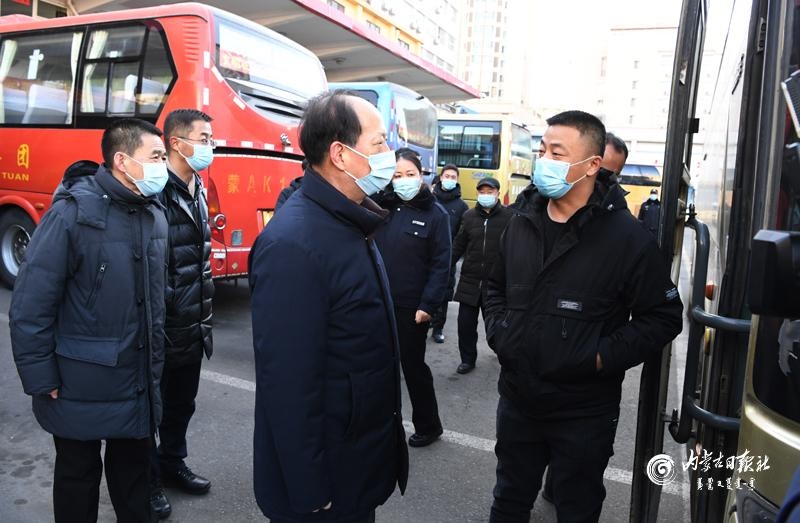 節(jié)假日期間人員流動增加,做好疫情防控和交通出行保障非常重要。石泰峰來到呼和浩特火車站、長途汽車站,看望慰問一線工作人員,實地了解各項措施落實情況。通過車站自助驗證通道后,石泰峰首先來到售票處,詢問旅客購票和出行情況,叮囑車站工作人員在節(jié)假日期間要實行網(wǎng)上預約購票,避免人員聚集。在進站口,石泰峰看到旅客掃碼后還需人工查驗結(jié)果,他強調(diào),要優(yōu)化售票檢票等服務流程,充分運用技術手段改進旅客進站檢查方式,切實堵塞工作漏洞。要嚴謹細致做好進站測溫、驗碼等防疫檢查,嚴格控制、科學調(diào)節(jié)客流量。要加強規(guī)范佩戴口罩、保持安全距離等防范措施提醒,引導旅客做好個人防護。在汽車站停車場,石泰峰與司乘人員交談,深入了解車輛消殺、信息登記等情況。隨后,他乘坐地鐵2號線,調(diào)研疫情防控和市民出行情況。他強調(diào),要嚴格落實常態(tài)化交通運輸疫情防控要求,認真落實客運場站和交通運輸工具消毒通風、設置隔離區(qū)等措施,加強客運一線服務人員日常健康監(jiān)測和定期核酸檢測,制定應急預案,完善相關設施,讓群眾出行更加安全順暢舒心。