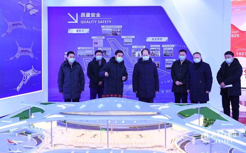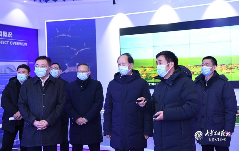 1月18日下午,自治區(qū)黨委書記、人大常委會主任石泰峰在呼和浩特新機(jī)場智慧展廳,聽取新機(jī)場主體建設(shè)情況介紹。內(nèi)蒙古日報社融媒體記者 袁永紅 攝