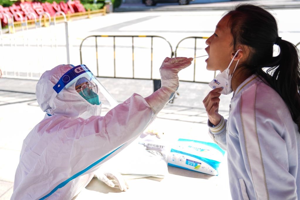 4月30日,北京市大興區(qū)亦莊鎮(zhèn)一核酸采樣點(diǎn),醫(yī)護(hù)人員為市民進(jìn)行核酸采樣。新華社記者彭子洋 攝