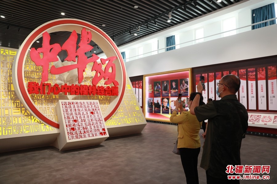 “中華頌——我們心中的模樣”綜合展,分為我的祖國、壯麗江山、燦爛文明、偉大精神四部分。展覽選用了350余張圖片、50余件實(shí)物展品、55個(gè)音視頻以及多項(xiàng)互動(dòng)體驗(yàn)裝置,全方位、多角度展示了我國各民族共有共享的中華文化符號(hào)和中華民族形象。