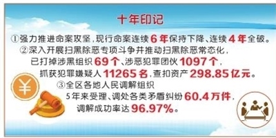 深入開展掃黑除惡專項(xiàng)斗爭并推動掃黑除惡常態(tài)化,2018年以來,已打掉涉黑組織69個、涉惡犯罪團(tuán)伙1097個,抓獲犯罪嫌疑人11265名,查扣資產(chǎn)298.85億元。
