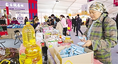 滿洲里互貿(mào)區(qū)的商品吸引附近的牧民前來購(gòu)買。 記者 李新軍 攝