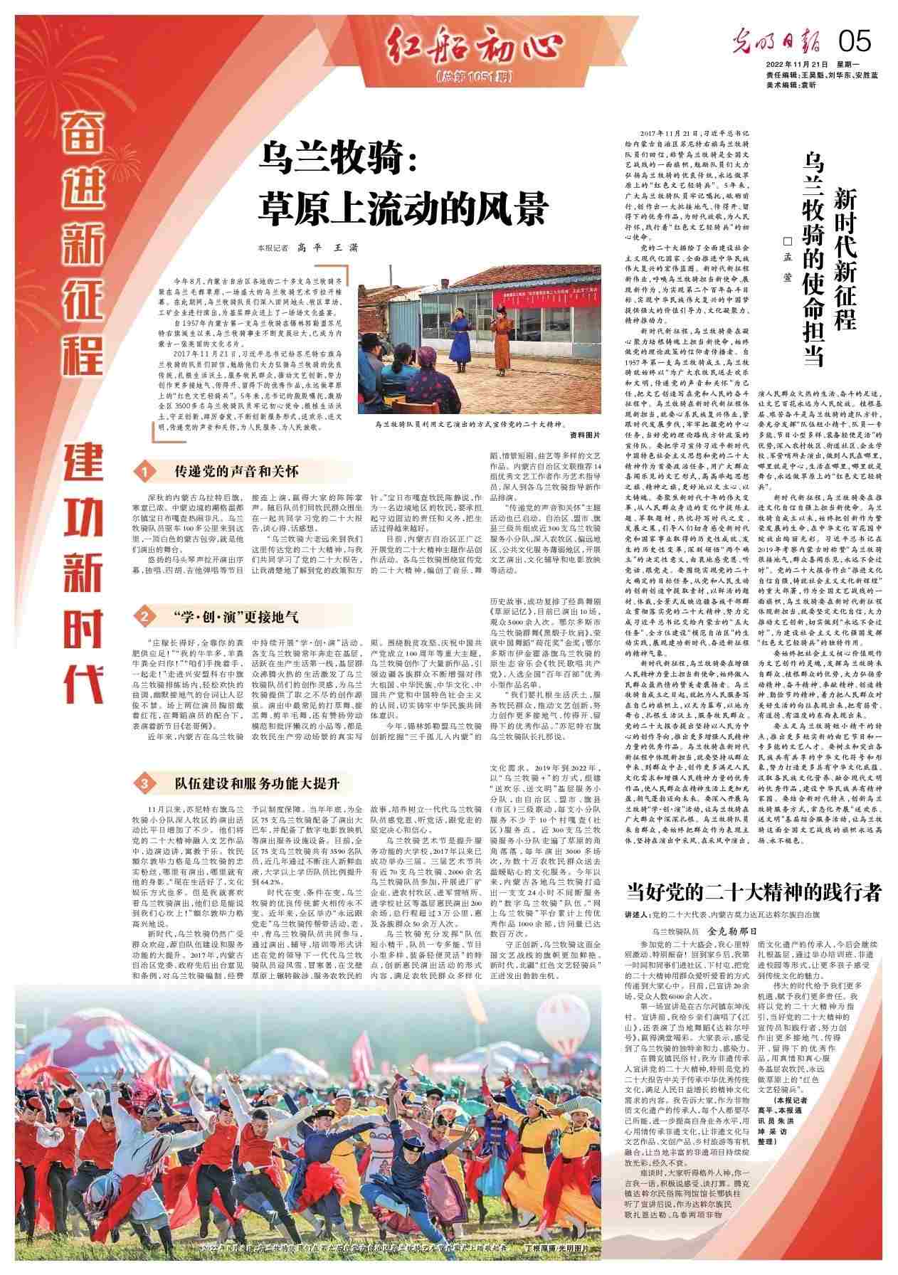 守正創(chuàng)新,烏蘭牧騎這面全國(guó)文藝戰(zhàn)線的旗幟更加鮮艷。新時(shí)代,北疆“紅色文藝輕騎兵”正迸發(fā)出勃勃生機(jī)。