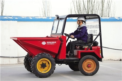 采用煤基納米碳?xì)淙剂现瞥傻奶胤N煤基油品在工作人員駕駛的小車柴油發(fā)動機(jī)上壓燃點(diǎn)火后,小車平穩(wěn)運(yùn)行。本報記者馬駿馳攝