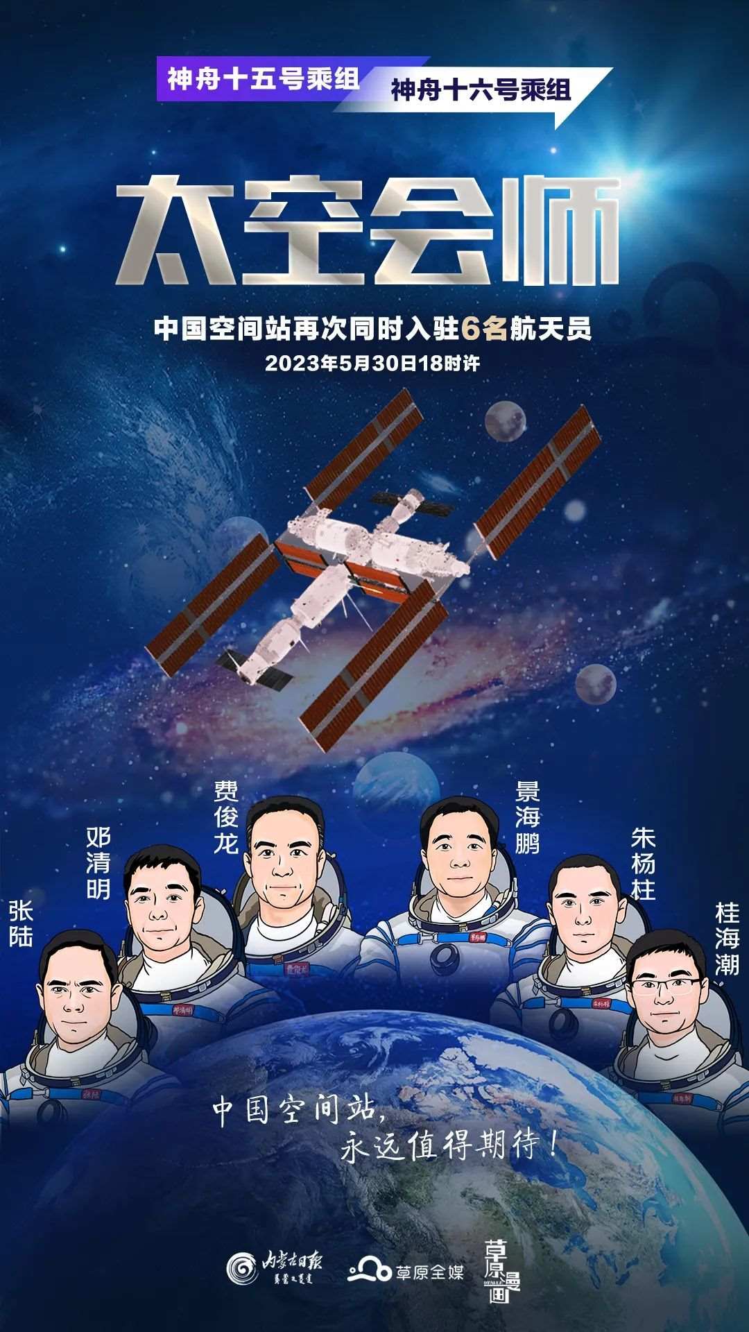 5月30日9時31分,神舟十六號載人飛船發(fā)射升空,“神十六”飛行乘組隨后在當(dāng)日18時許與“神十五”乘組會師太空,拍下全家福。這也是中國空間站的第二次太空會師。幾天來,“神十六”飛行乘組三類航天員的全新組合引起網(wǎng)友廣泛討論。