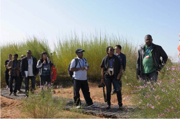 2017年9月,《聯(lián)合國(guó)防治荒漠化公約》第十三次締約方大會(huì)與會(huì)代表觀摩庫布其生態(tài)建設(shè)現(xiàn)場(chǎng)。