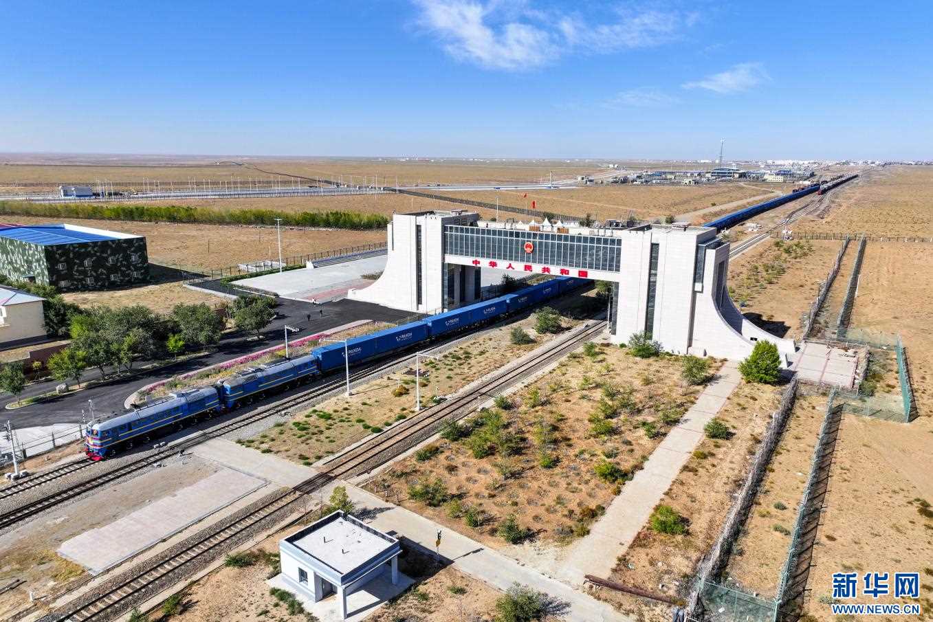 中歐班列駛出滿(mǎn)洲里國(guó)門(mén)。新華網(wǎng)發(fā) (李新軍 攝)